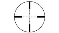 Прицельная сетка расположена в первой фокальной плоскости и увеличивается в размере пропорционально оптическому увеличению.