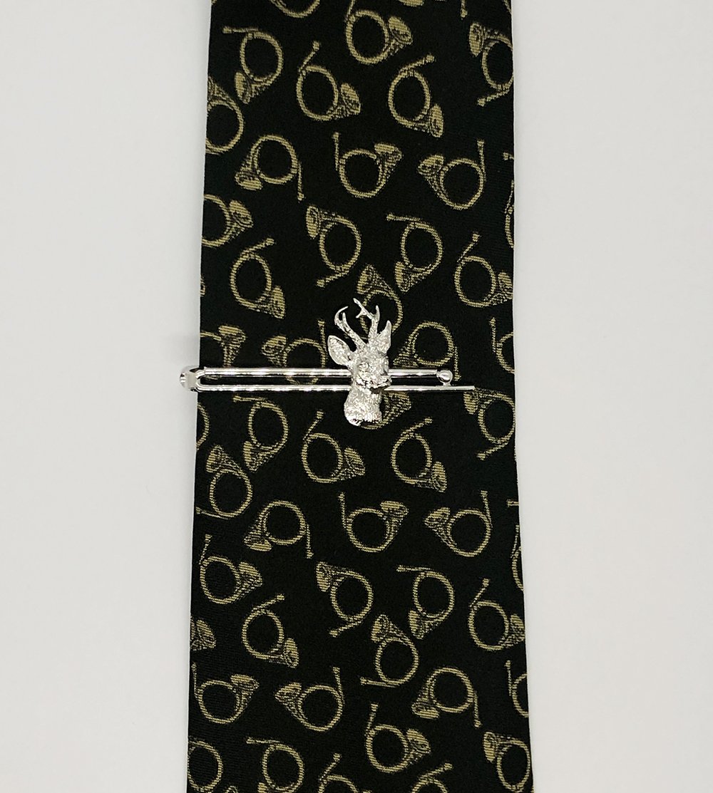 Мелаллический зажим для галстука и изображениями на охотничью тематику.